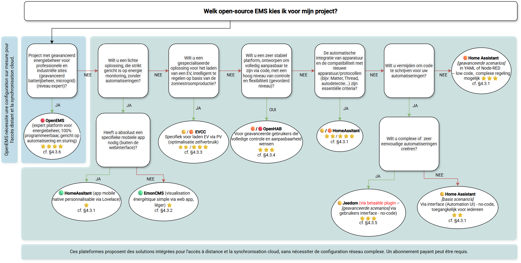 | OpenEMS | Industrie, grote sites, microgrids | Lokaal + backend optie | Complex, professionele installatie | Industriële protocollen | Professionele UI | Java modules | Zeer krachtig, multi-apparaten, voorspellend | Ja (FENECON FEMS) | ★★★★★ |