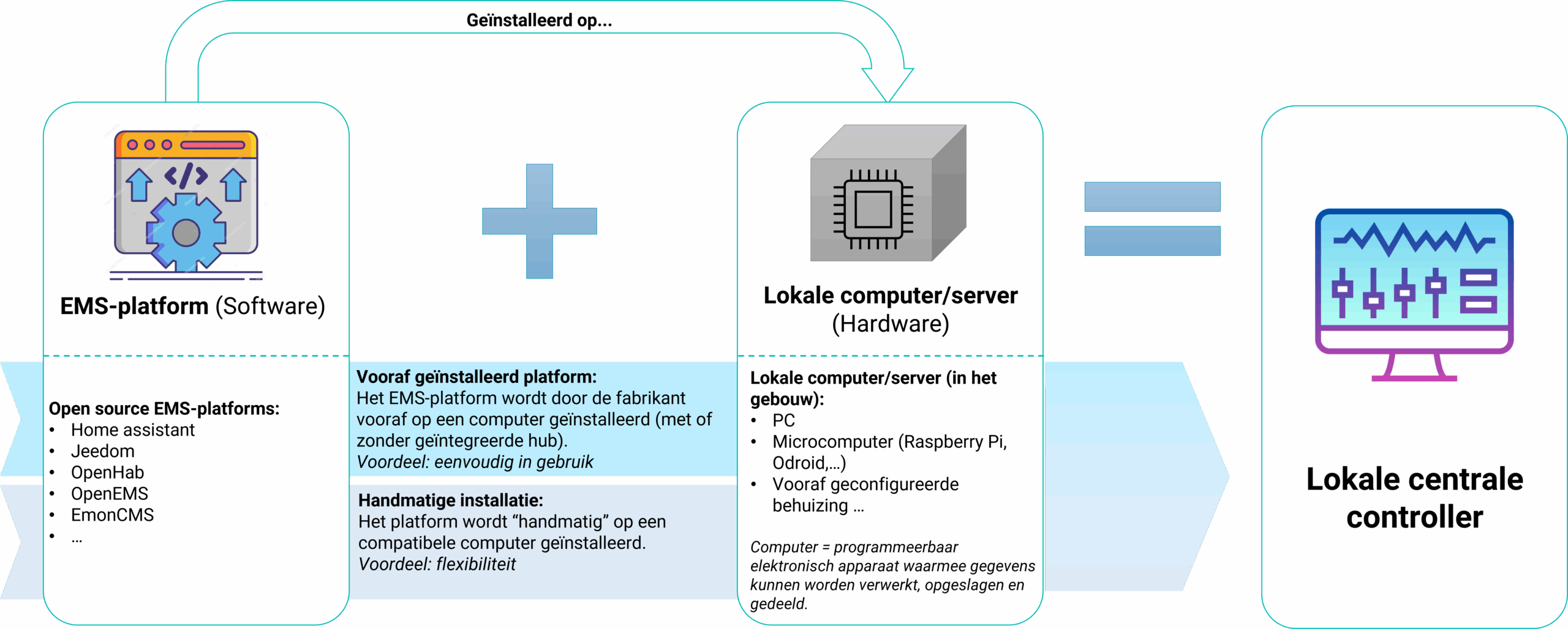 software: het EMS-platform dat alle gegevens interpreteert en de automatisatie uitvoert.